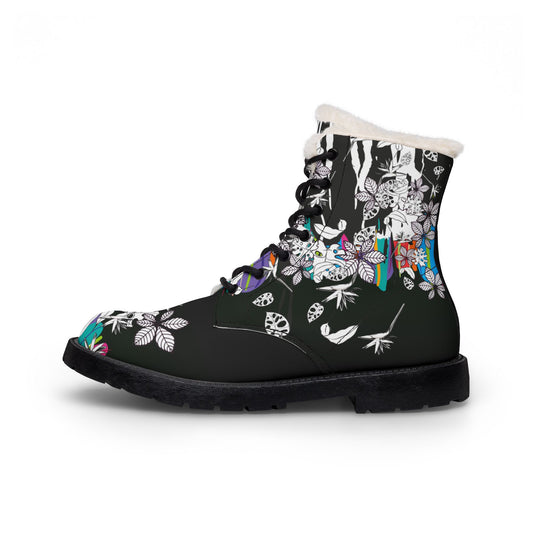 Colibris-Lined Leather Boots — Women's Colorful Garden Winter Boots
