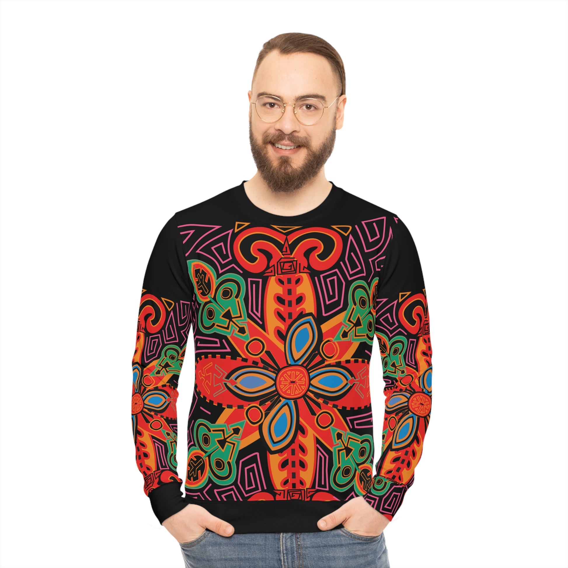 Bold Tribal Floral Lightweight Sweatshirt — Vibrant All-Over-Print