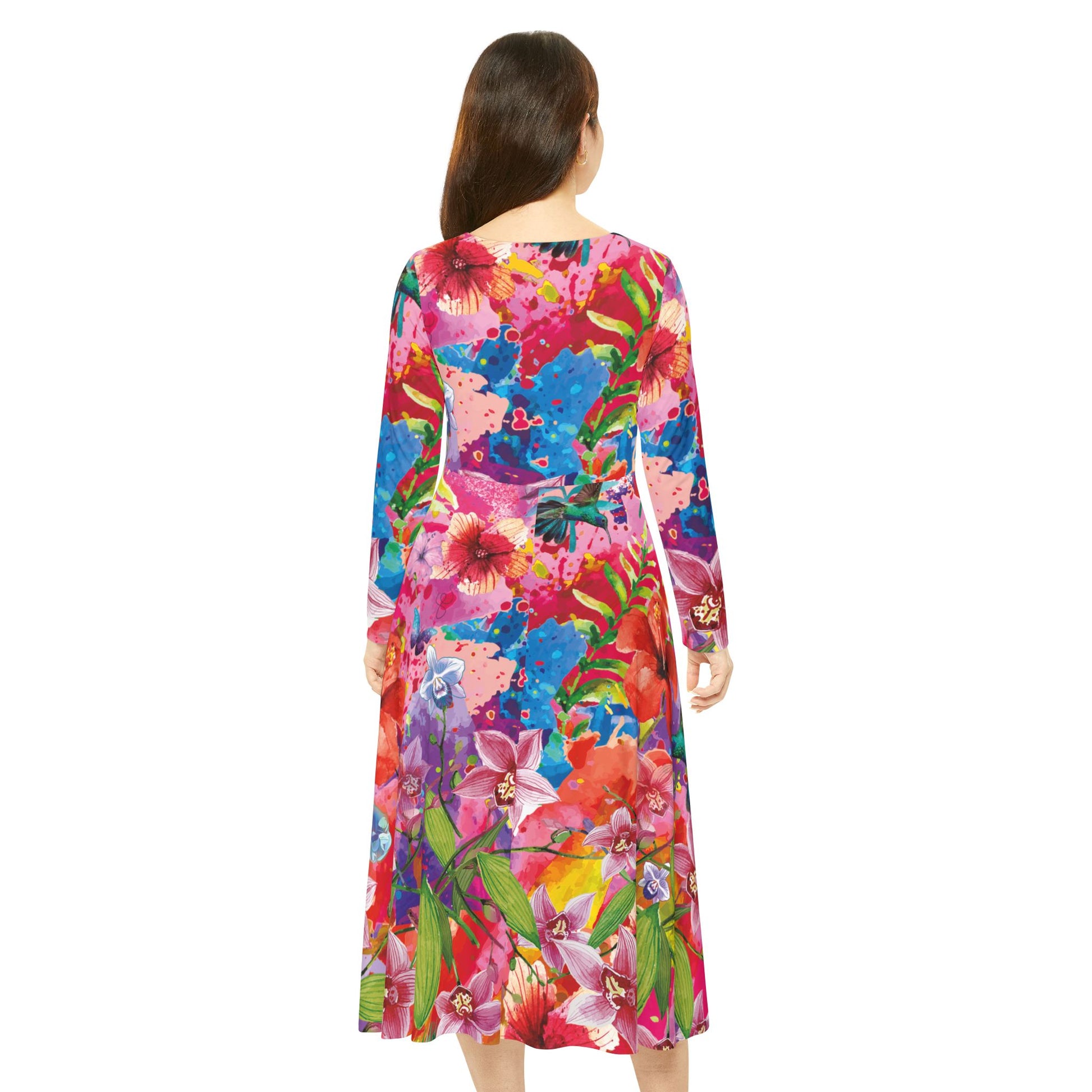 Floral Tropical Dance Dress — Vibrant Long-Sleeve AOP
